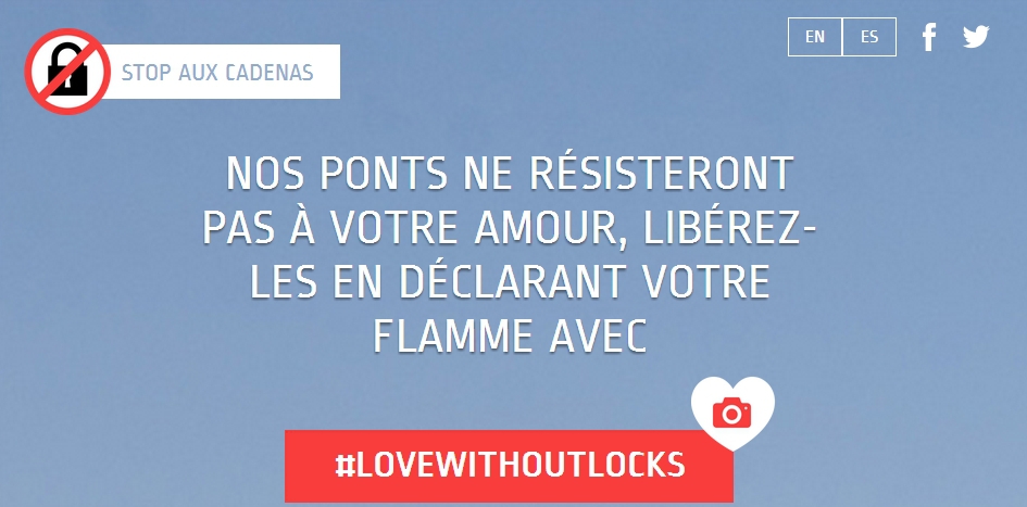 Autocolante au fost lipite pe podurile pariziene încă de luni, pentru a sugera îndrăgostiţilor să facă selfie-uri – fotografii de tip autoportret realizate cu telefoane mobile – şi să le publice pe un site special (lovewithoutlocks.paris.fr) sau pe Twitter, cu hashtagul #lovewithoutlocks („iubire fără lacăte”).