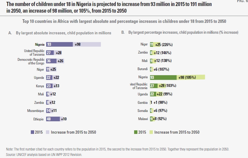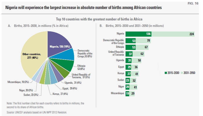 Doar Nigeria, cea mai populată ţară din Africa şi prima putere economică a continentului, va reprezenta 10% din naşterile înregistrate în lume până în 2050.