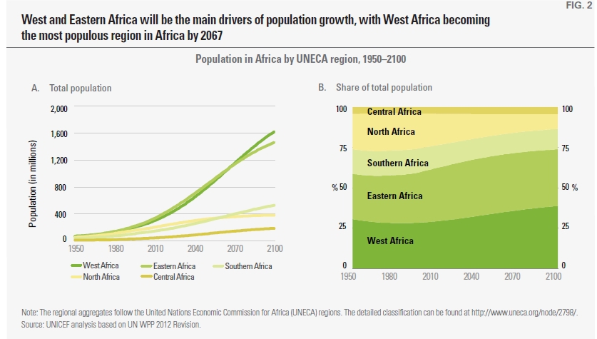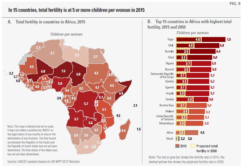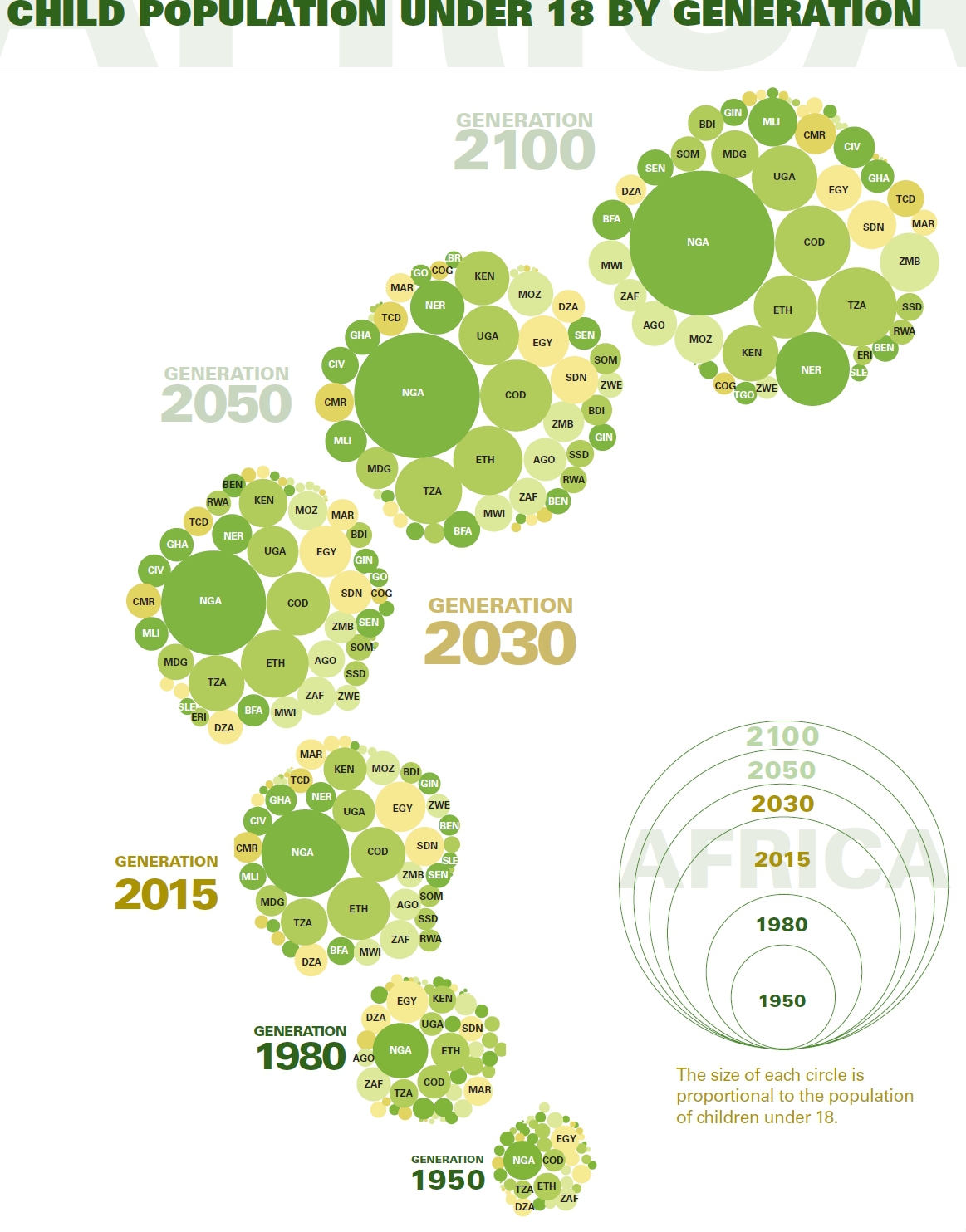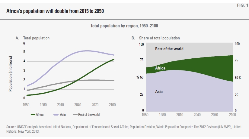 „Pe baza tendinţelor actuale, în 35 de ani, 25 de persoane din 100 vor fi africani„, potrivit unui raport al Fondului Naţiunilor Unite pentru Copii prezentat la Johannesburg.