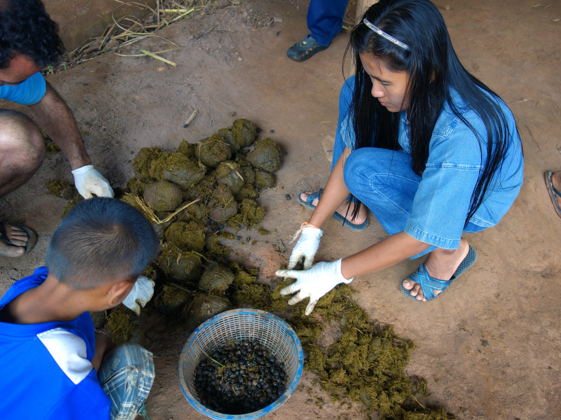 Iată cum se obţine această cafea: boabele Arabica, culese de pe anumite dealuri din nordul Thailandei, sunt amestecate cu fructe şi date elefanţilor pentru a fi mâncate. După aproximativ 3 zile ele sunt eliminate prin fecale şi culese, iar apoi spălate.