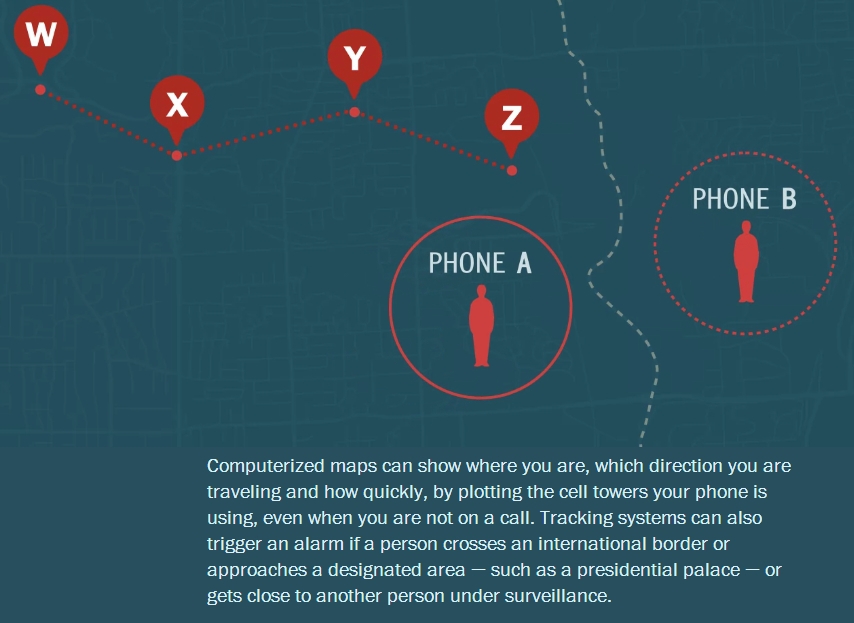 Sistemul de supraveghere funcţionează prin caracteristicile tehnice esenţiale ale telefoanelor mobile: acestea actualizează la fiecare secundă locaţiile abonaţilor. Iar servicii de informaţii colectează datele, elaborând hărţi cu deplasările persoanelor, conform unor specialişti în sisteme de monitorizare.