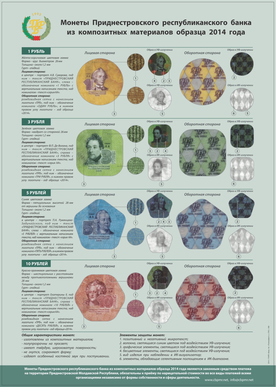 Banca Republicană Transnistreană (BRT) va emite noi monede de plastic, de diferite forme geometrice şi culori, pentru a marca cea de-a 20-a aniversare a monedei transnistrene, informează site-ul Pravda.ru.