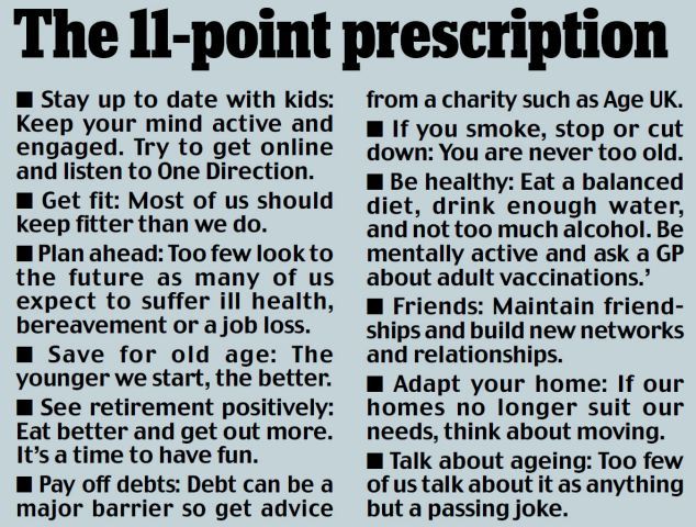 Pensionarii sunt îndemnaţi să rămână activi din punct de vedere mintal, prin rezolvarea jocurilor de cuvinte încrucişate, şi să se pregătească pentru provocări neaşteptate, precum apariţia unor probleme de sănătate, moartea unor rude apropiate şi pierderea locului de muncă.