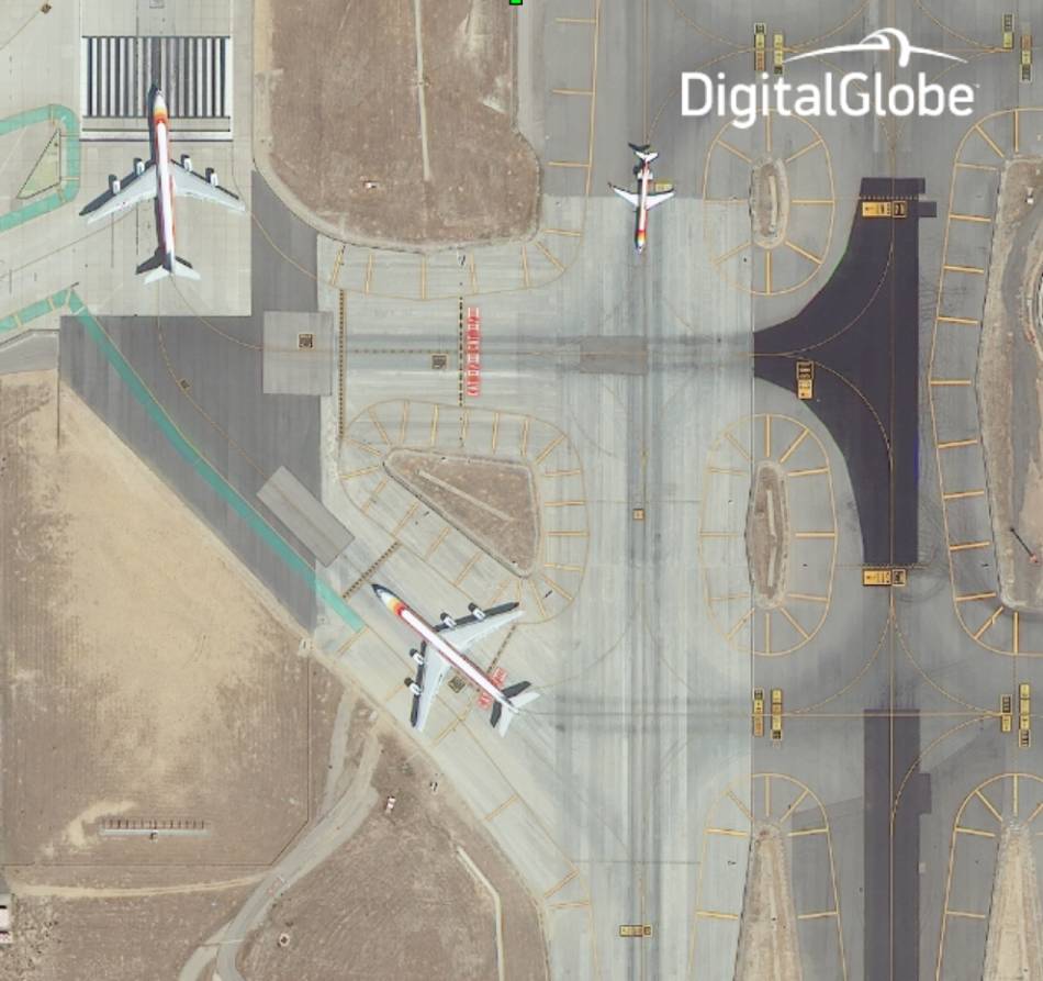 Primele imagini publicate înfăţişează un aeroport din Madrid şi împrejurimile acestuia; în imagini sunt vizibile nu numai avioane, ci şi cărucioarele de bagaje. În împrejurimi, pot fi clar văzute şi numărate piscinele, maşinile, chiar şi copacii.
