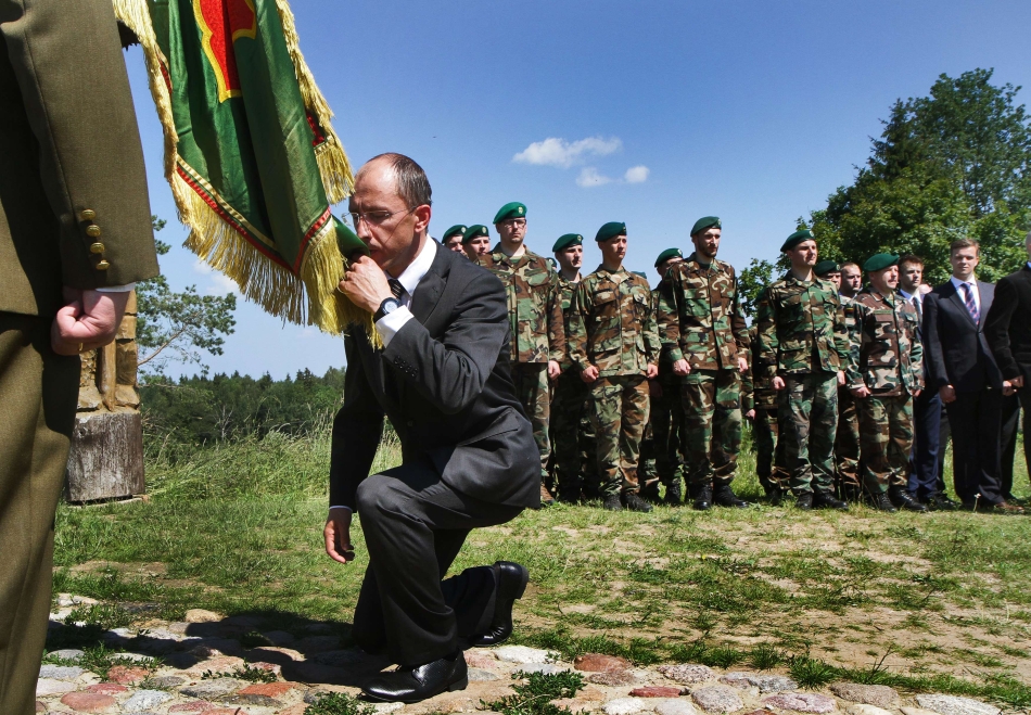 Aceşti războinici de weekend poartă cu mândrie la încheietura mâinii brăţări cu emblema ce reprezintă un pin, simbolul rezistenţei armate faţă de ocupaţia micii lor ţări, în 1940, de către fosta Uniune Sovietică.