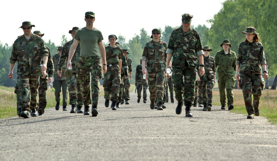 Trăgătorii îşi petrec weekendurile efectuând manevre în pădure sau într-o tabără de antrenament militar de la Pabrade, la nord de Vilnius.