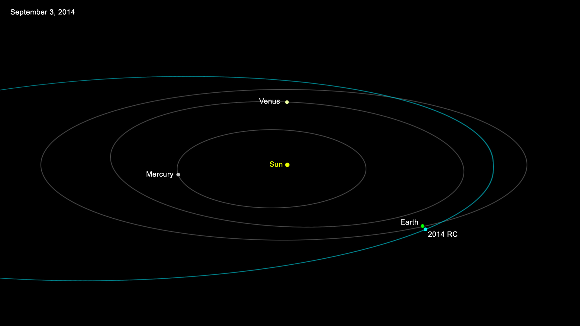 Asteroidul 2014RC, cu un diametru de 20 de metri, va trece duminică seară, la ora 22.18 (ora României) pe deasupra Noii Zeelande, la o altitudine de 40.000 de kilometri, iar specialiştii Agenţiei spaţiale americane (NASA) spun că nu va lovi Pământul. Obiectul spaţial se va intersecta însă cu orbita Pământului din nou, în viitor, potrivit astronomilor.