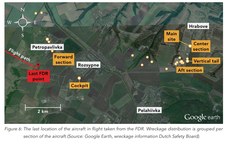 Un fragment din avionul Boeing al Malaysia Airlines se află din 23 iulie în satul Petropavlivka, din regiunea Doneţk, în estul Ucrainei. Anchetatorii au afirmat că avionul a fost lovit de proiectile provenind de la o armă cu fragmentaţie, asemenea rachetei Buk. Afirmaţiile sale au fost confirmate de un al doilea martor, care a adăugat că un ofiţer care însoţea transportul sistemului Buk într-o maşină militară vorbea cu un accent moscovit.