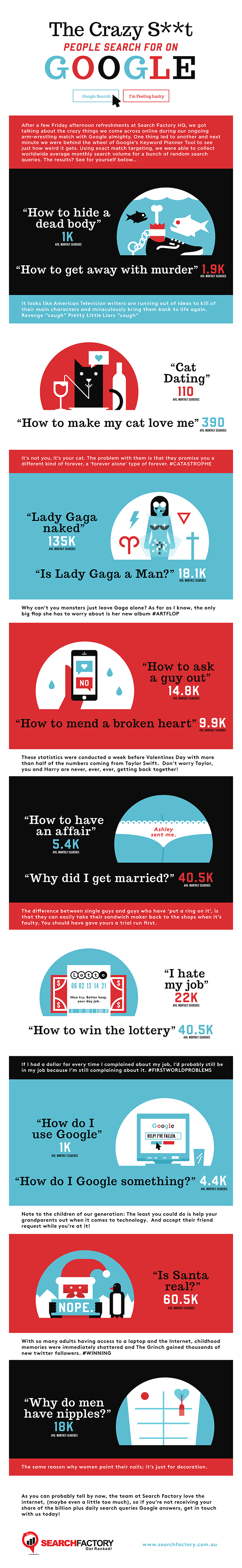 Compania de SEO SearchFactory din Australia a prezentat cele mai ciudate întrebări pe care le pun online utilizatorii Google.