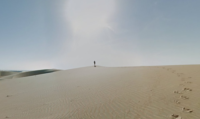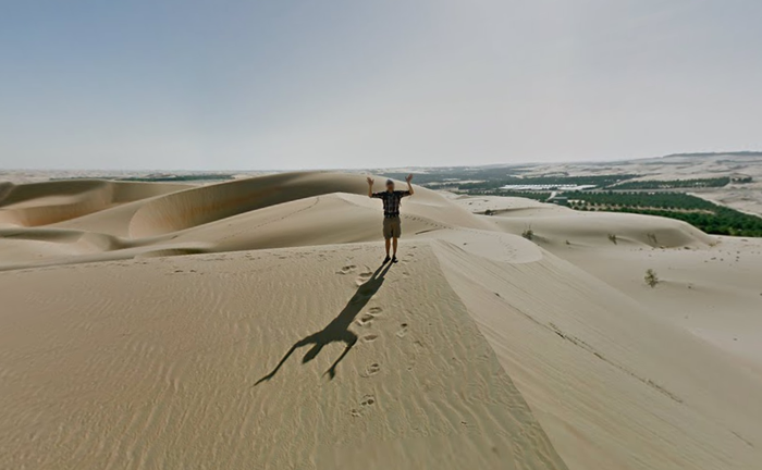 Imaginile sunt impresionante, oferind o perspectivă unică, astfel că oamenii pot vedea deşertul Liwa din Arabia exact cum l-ar vedea dacă ar sta ei pe spatele unei cămile.