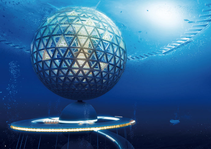 Circa 4.000 de rezidenţi şi 1.000 de vizitatori vor putea să trăiască şi să lucreze într-un fel de „Atlantidă modernă”, o sferă cu diametrul de 500 de metri care ar conţine hoteluri, ansambluri rezidenţiale, birouri, laboratoare de cercetare şi centre comerciale.