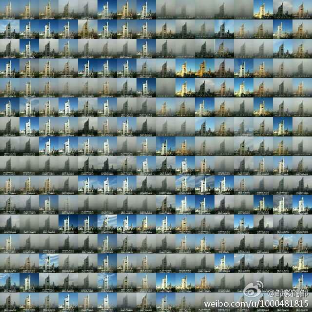 Poza, care prezintă aceeaşi clădire, Turnul BTV, a fost realizată cu telefonul mobil mereu la aceeaşi oră, din acelaşi unghi, timp de 365 de zile.