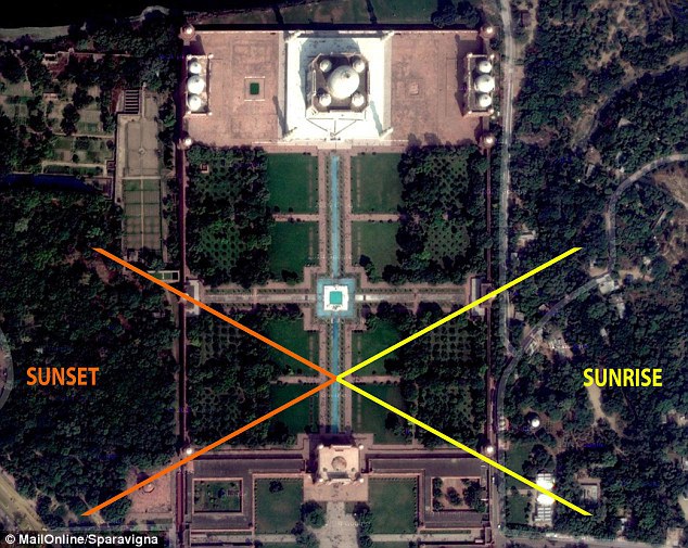 În momentul în care soarele răsare şi apune în timpul solstiţiilor, el este aliniat cu toate cele patru colţuri ale grădinii de lângă clădirea centrală.