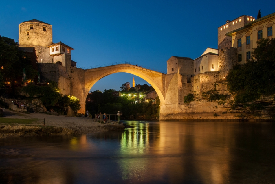 „Podul Vechi” din Mostar, sau Stari Most, este construit din 456 blocuri de piatră de provenienţă locală; a fost edificat în 1566, sub conducerea arhitectului otoman Mimar Hajrudin, şi reprezintă unul dintre cele mai remarcabile exemple de arhitectură islamic din Balcani. Distrus în anii 1990, în cursul războilului civil din regiune, a fost reconstruit, refacerea lui durând aproape 10 ani.