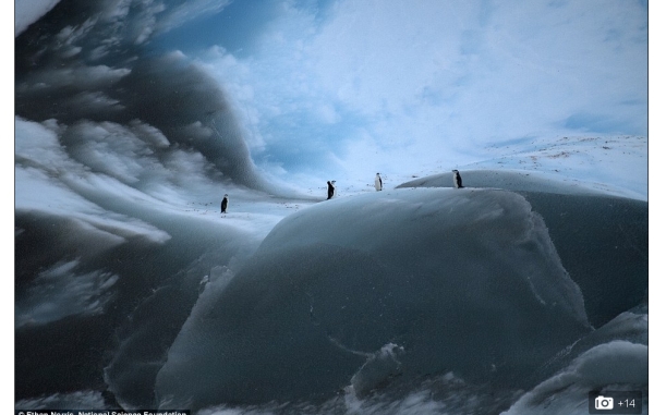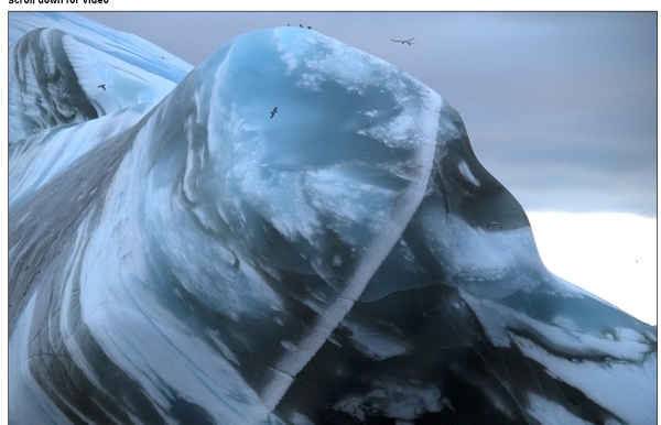 În medie, 90% din suprafaţa unui aisberg este situată sub apă, însă în aceste imagini apare un aisberg răsturnat.