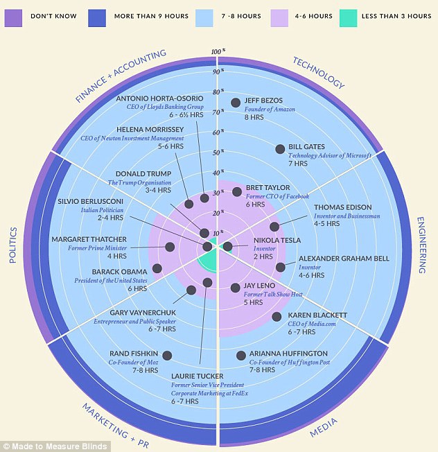 Fondatorul gigantului Microsoft şi cel mai bogat om din lume, Bill Gates, doarme în medie şapte ore pe noapte, în timp ce miliardarul Donald Trump îşi rezervă pentru somn doar trei sau patru ore.