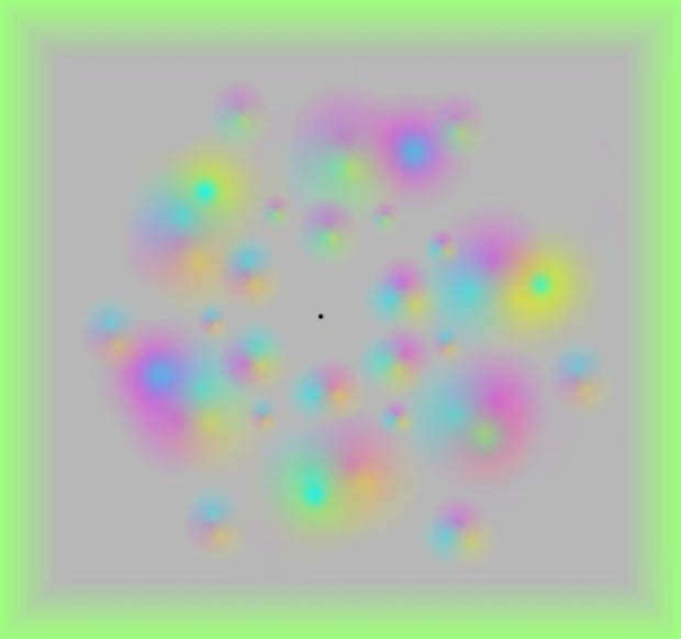 O altă iluzie optică a lui Troxler. Dacă vă concentraţi asupra punctului negru din mijloc, toate celelalte culori din imagine vor dispărea.
