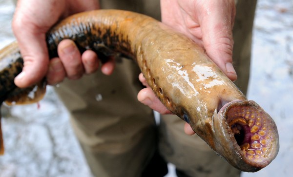 ”Peştele vampir” este un vertebrat acvatic similar ţiparului sau unui şarpe.