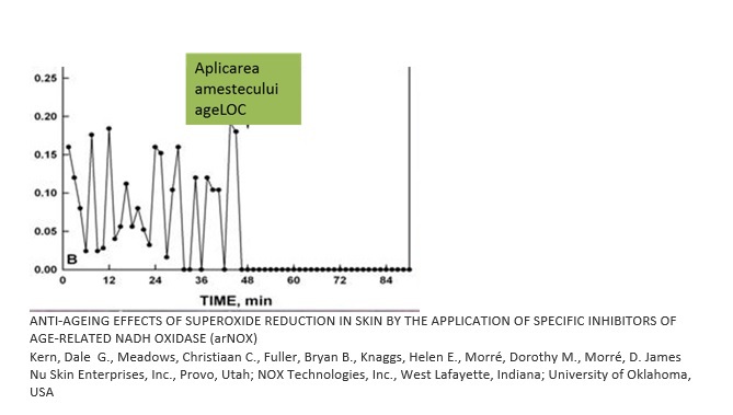 NOXĂ asociată îmbătrânirii = generator intern de radicali liberi. Activitatea acestei enzime este un parametru important. Activitatea arNOX se amplifică cu vârsta, în special între vârstele de 35 şi 75 de ani. Activitatea arNOX crescută este direct corelată aspectului