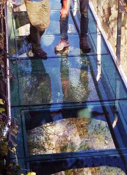 Noul pod din sticlă înlocuieşte o fostă pasarelă de lemn, care fusese deja înlocuită parţial cu una de sticlă în 2014.