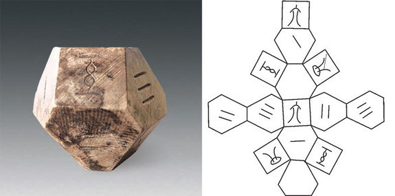 Douăsprezece feţe ale matricei sunt numerotate de la 1 la 6 într-o formă de scriere chineză antică, cunoscută sub numele de „script Seal„. Fiecare număr apare de două ori pe zar în timp ce două feţe au fost lăsat necompletate, au observat cercetatorii.