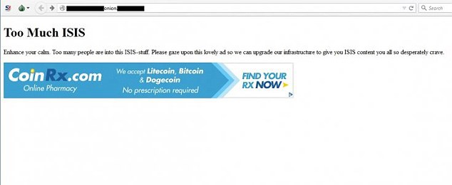 Textul de pe homepage era: „Prea mult ISIS. Păstraţi-vă calmul. Prea mulţi oameni sunt în acest ISIS. Vă rugăm să priviţi la acest anunţ minunat, astfel încât să putem moderniza infrastructura noastră şi să oferim ISIS un conţinut  pe care-l tot caută cu disperare”.
