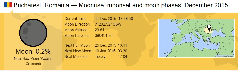 Pentru europeni luna va fi vizibilă chiar în ziua de Crăciun, pe când pentru cei din SUA, luna va putea fi admirată în Ajunul Crăciunului. În Bucureşti, luna va fi în faza maximă pe 25 decembrie la ora 13:11.