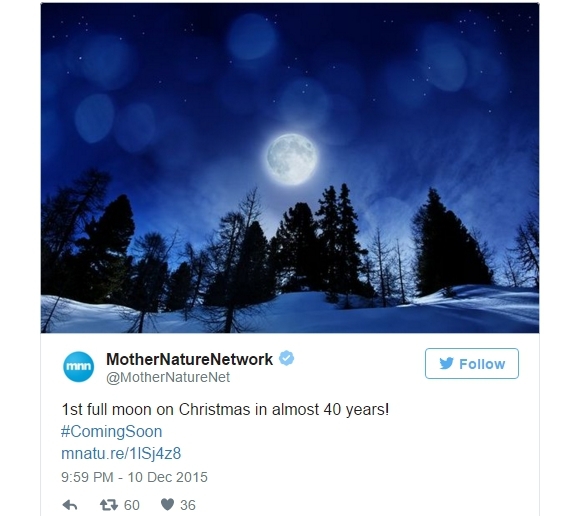 Potrivit The Weather Channel, nu a mai fost o lună plină de Crăciun din anul 1977, iar o altă lună plină care va urca pe cer în noaptea sfântă va fi în anul 2034.