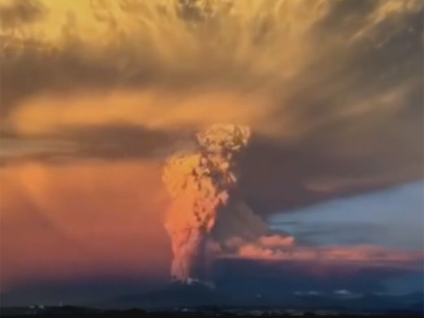 22 aprilie 2015 – Nori de fum se ridică deasupra vulcanului Calbuco în Puerto Montt, Chile. Vulcanul a erupt pentru prima dată în ultimii 40 de ani.