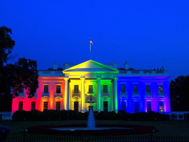 26 iunie 2015 – Casa Albă este acoperită de culorile curcubeului, în semn de susţinere a deciziei Curţii Supreme, ce a votat pentru legalizarea căsătoriei între persoane de acelaşi sex.
