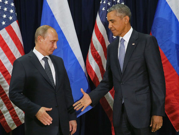28 septembrie 2015 – Preşedintele statelor Unite, Barack Obama, îi întinde mâna şefului de stat din Rusia, Vladimir Putin, însă divergenţele de opinie dintre cele două mari puteri se văd pe chipul liderului de la Moscova.