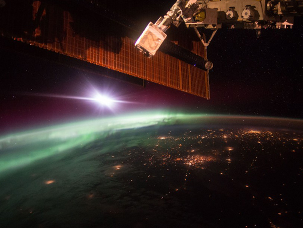 7 octombrie 2015 – Astronautul Scott Kelly, aflat la bordul Staţiei Spaţiale Internaţionale, a distribuit această poză pe Twitter, cu mesajul: „Doza zilnică de auroră, pentru a te ajuta să te trezeşti”.