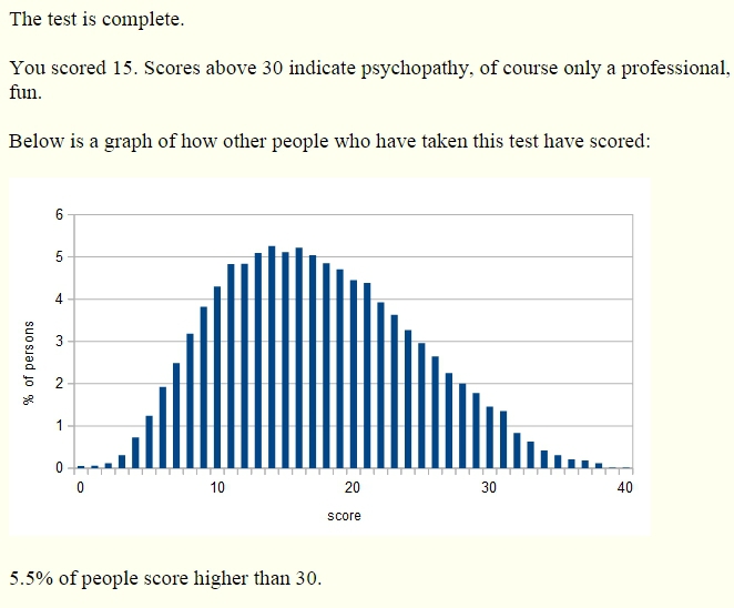 Testul Hare. Rezultat – nu sunteţi psihopat, aţi acumulat 15 din 30.