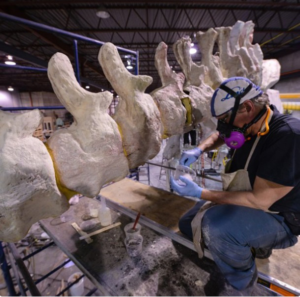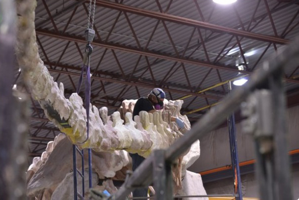 Scheletul expus zilele trecute la New York este cel mai mare exponat de la muzeu, depăşind chiar şi Balena Albastră care deţinea până acum recordul. Creatura preistorică nu a încăput în cea mai mare încăpere a clădirii, astfel că o parte din gâtul său uriaş a fost scoasă afară pe uşa de intrare în sala de expoziţie.