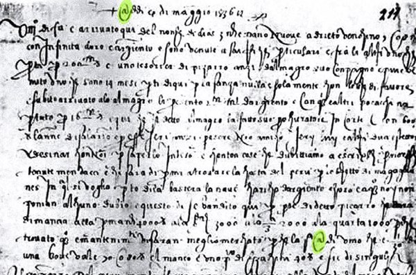 În anul 2000, a fost descoperită o scrisoare a unui negustor florentin, Francesco Lapi, scrisă la 4 mai 1536, în care semnul @ apare exact în varianta de astăzi, dar era folosit pentru a desemna o măsură comercială, amfora (a 13-a parte dintr-un butoi) şi scris în caligrafia florentină.