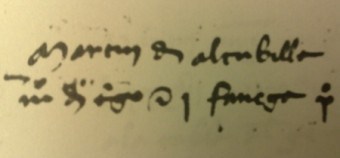 Simbolul avea să mai apară în scrieri abia peste 100 de ani, sub o formă uşor diferită, proto-@ (foto). El era folosit într-un registru spaniol din 1448, Taula de Ariza, care se referea la un transport naval de grâne din Castilla în Aragon.
