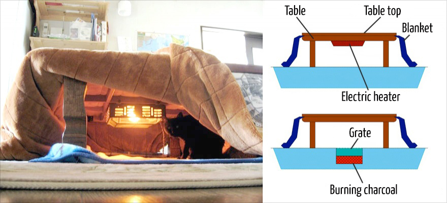 Pe măsură ce se apropie iarna în Japonia, oamenii din aproape orice casă încep să folosească Kotatsu, o formă hibridă de masă, pătură şi radiator. Ei sunt nevoiţi să apeleze la această invenţie din cauza faptului că încălzirea centralizată nu există în Japonia.
