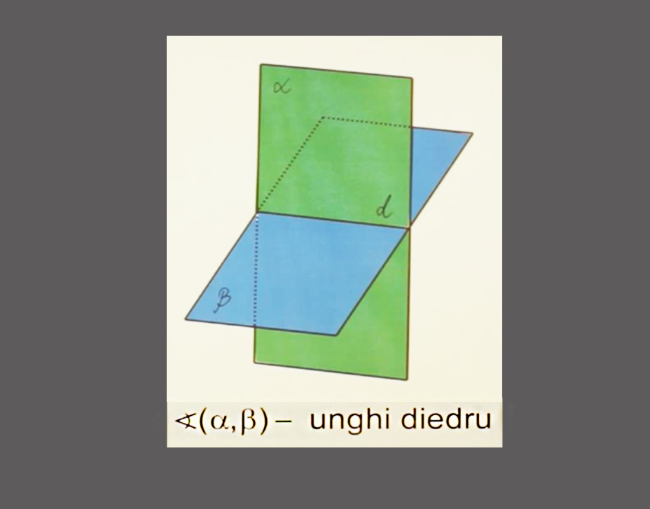 Teorie: Între 2 suprafeţe pe care le numim plane în geometrie, se formează un unghi pe care îl numim unghi diedru. Vom spune că două semiplane cu dreapta de origine comună determină un unghi diedru