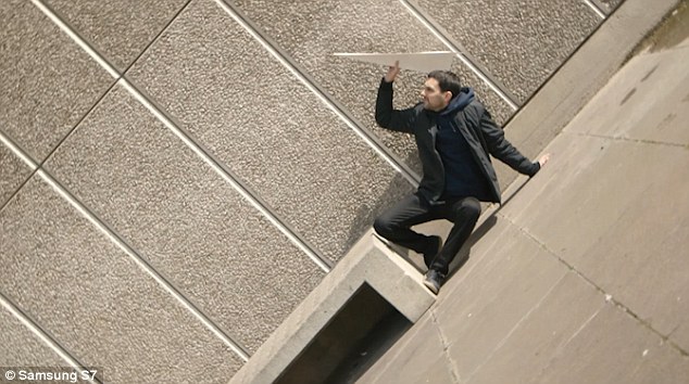 În această imagine, Dynamo pare că se află pe marginea unei borduri, însă ceea ce vedem este, de fapt, o bancă din beton. „Avionul de hârtie a fost inclus în mod special în această fotografie, pentru că umbra lui provoacă confuzie. Mai mult decât atât, obiectul din mâna mea se află în mişcare, însă l-am putut fotografia folosind camera foto performantă a smartphone-ului”, a adăugat magicianul.