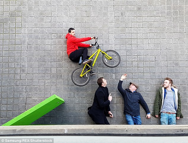 Aici, Dynamo apare ca şi când ar sări cu bicicleta peste cei trei prieteni ai săi. De fapt, toţi se află pe beton, fiind fotografiaţi de la înălţime, pentru a părea că încearcă să-l evite pe magicianul care încearcă să zboare deasupra lor.