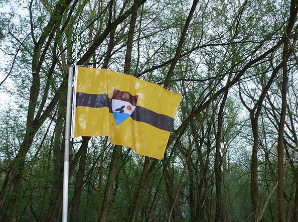 Liberland are propriul site, un drapel şi o stemă, iar limbile oficiale sunt ceha şi engleza.