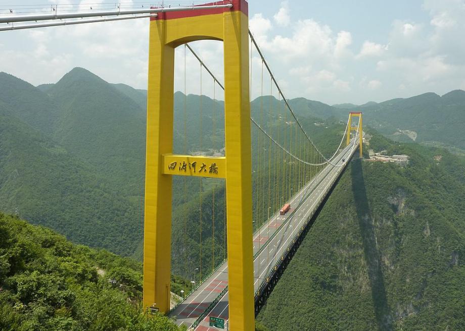 Construcţia, care străbate munţii din bazinul Sichuan peste valea râului Sidu, deţine recordul pentru podul aflat la cea mai mare înălţime. Sidu River Bridge are o lungime de 1.2 kilometri şi este suspendat la 496 de metri deasupra prăpastiei. A fost deschis traficului în 2009, când a devenit cea mai înaltă structură de acest gen din lume, depăşind Royal Gorge Bridge şi Beipanjiang River Bridge.