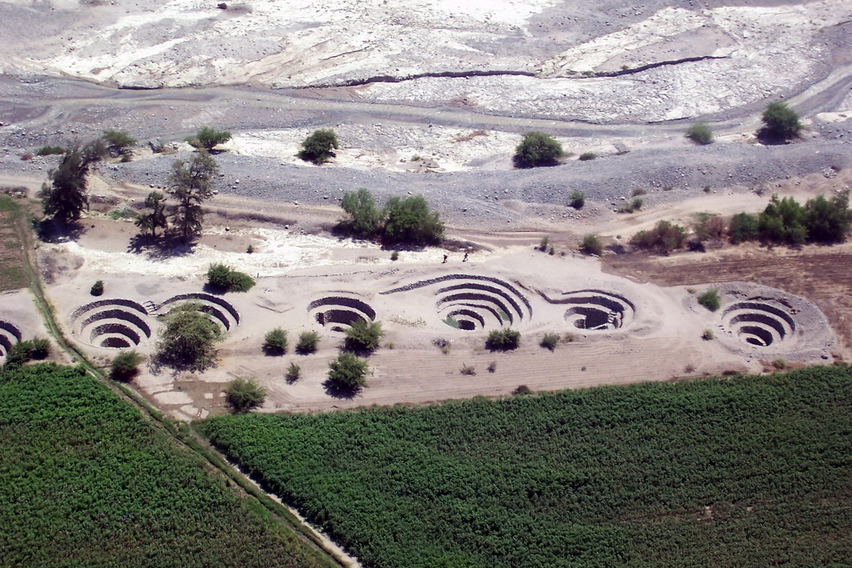 Deşertul din regiunea peruană Nazca este cunoscut pentru cele peste 900 de reprezentări umane, animale şi florale realizate în sol: aşa-numitele ,,linii Nazca”. Acestea nu sunt singurele realizări ale culturii care s-a dezvoltat în această zonă în perioada cuprinsă între anii 200 î.Hr. şi 600 d.Hr. Tot aici mai pot fi întâlnite o serie de apeducte subterane, pe care localnicii le-au denumit ,,puquios”.