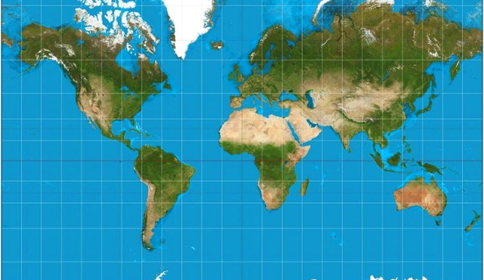 Harta de proiecţie Mercator. Sursa foto: Strebe / Wikimedia Commons