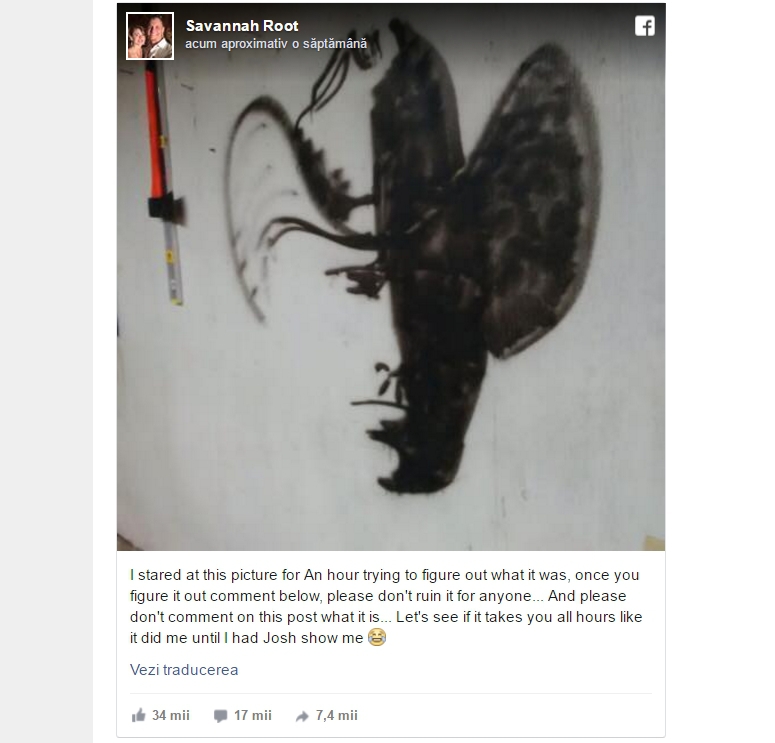 Se pare că mulţi oameni pot desluşi ce se ascunde în acest desen în numai câteva secunde, în timp ce alţii nu văd nimic decât câteva linii şi puncte sau o pată de cerneală neagră. În acelaşi timp, alte persoane găsesc tot felul de lucruri care, de fapt, nu sunt acolo.