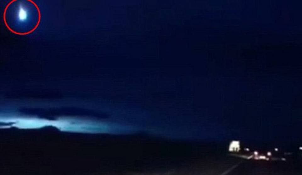 Intrarea meteoritului în atmosferă este surprinsă foarte clar de camera de luat vederi a unei maşini a poliţiei rutiere.