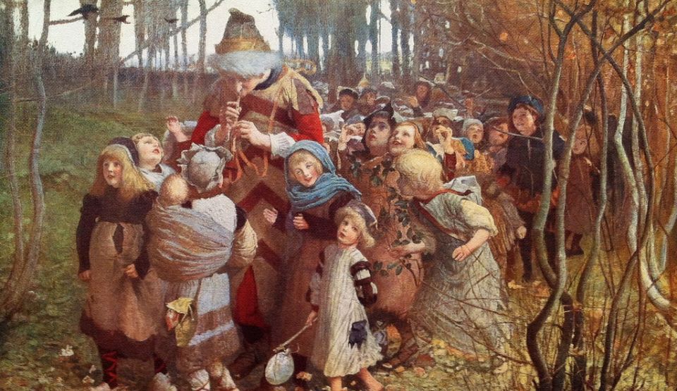 În povestea flautistului este prezentat un sat invadat de şobolani. Un bărbat îmbrăcat în haine multicolore ajunge în sat şi se oferă să scape localnicii de invazie. Aceştia acceptă să-i plătească flautistului o sumă de bani dacă reuşeşte. Flautistul cântă la instrumentul său şi toţi şoarecii fug din sat. Când acesta se întoarce în sat să-şi primească recompensa, localnicii nu i-o mai oferă, aşa că flautistul ”scapă” satul şi de copii. În varianta modernă, acesta îi trimite într-o peşteră până când îşi primeşte răsplata, mai apoi îi trimite înapoi. În povestea originală, flautistul îi conduce pe copii către un râu în care aproape toţi se îneacă, cu excepţia unui băiat. Unii experţi consideră că în poveste există conotaţii pedofile.
