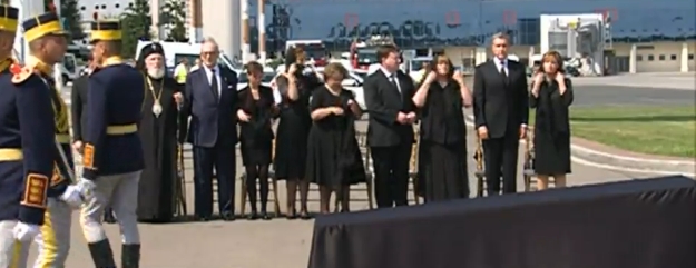 După sosirea aeronavei a avut loc o scurtă ceremonie militară şi religioasă, în prezenţa Alteţei Sale Regale Principesa Moştenitoare Margareta şi Principele Radu, Principesa Elena, domnul Alexander Nixon, Principesa Sofia, Principesa Maria, domnişoara Elisabeta Maria Biarneix – fiica Principesei Sofia, domnul Andrew Popper, şeful onorific al Casei Majestăţii Sale Regele Mihai I, ÎPS Nifon, domnul Consilier Prezidenţial Andrei Muraru şi staff-ul Casei MS Regele Mihai. De asemenea, la ceremonie va fi prezent şi Arhiepiscopul Ioan Robu care a rostit o rugăciune în limba latină.