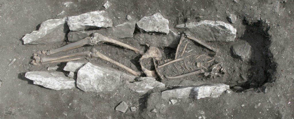 ,,Chiar dacă rămăşiţele sunt sau nu urmele unui sacrificiu uman, acesta este un altar pentru sacrificii, nu este un loc în care îngropi pe cineva, nu este cimitir,” a adăugat el. Un detaliu neobişnuit a fost lipsa părţii superioare a craniului, în timp ce corpul era aşezat între două linii de piatră cu un rând de pietre care îi acopereau zona pelvisului.