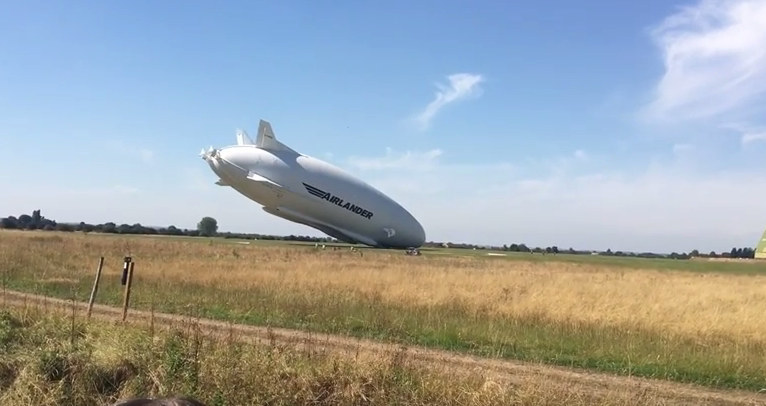 Hybrid Air Vehicles, compania care dezvoltă aeronava de 25 milioane de lire sterline, a postat o declaraţie pe Facebook după accident: ”Chestionăm echipajul după al doilea zbor din această dimineaţă. Toţi membrii echipajului sunt în siguranţă şi nu există leziuni”.